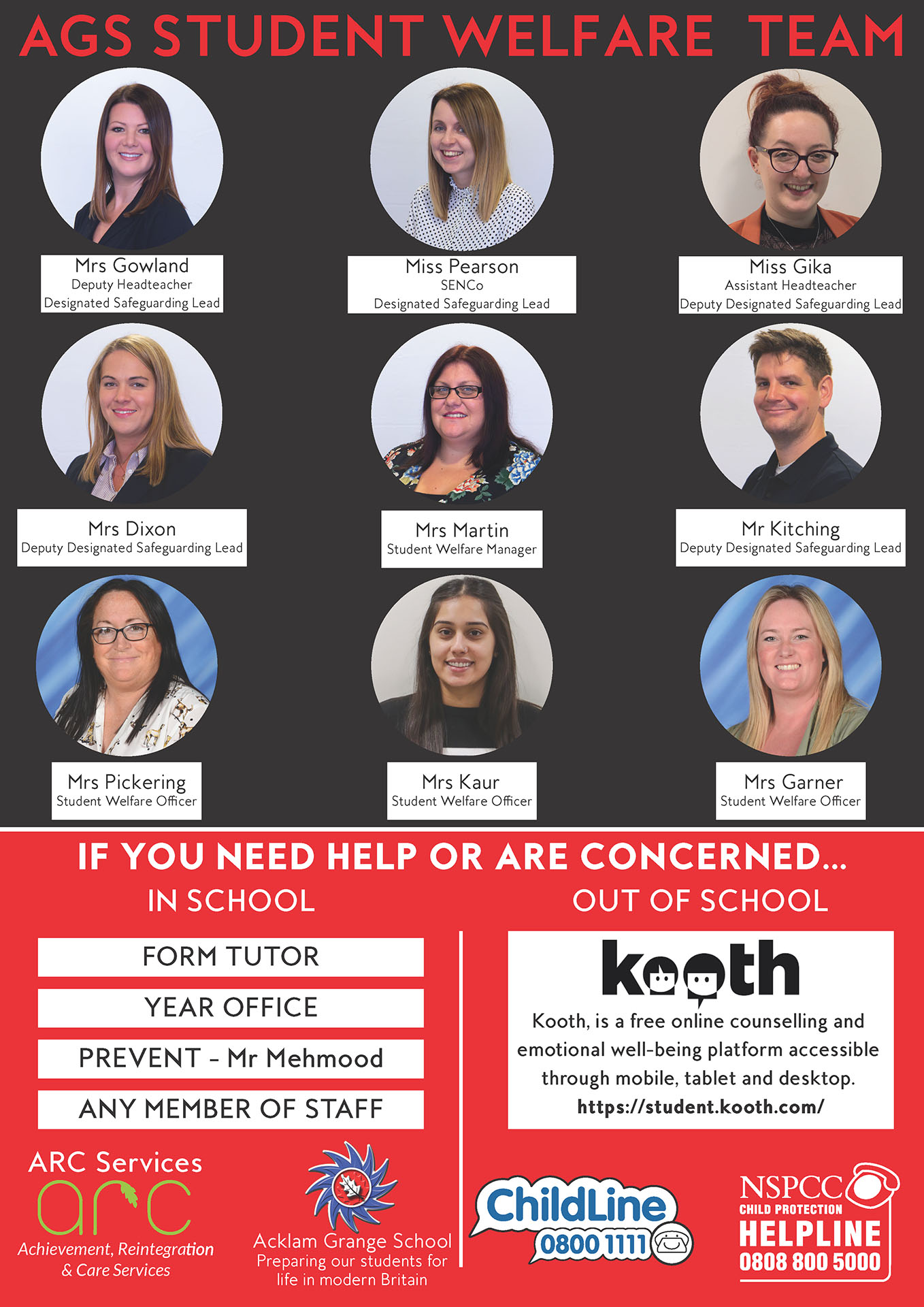 If you are worried about the safety of a student who attends Acklam Grange School, please make contact with a member of the safeguarding team via the school’s main number, 01642 277700, or alternatively contact safeguarding@acklamgrange.org.uk